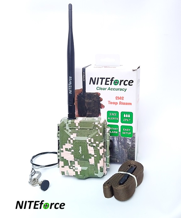 NITEforce SMS Trap Alarm Fäll-larm bevakar och ger larm när fällan utlöses. Enheten skickar ett larmmeddelande i form av SMS till ägarens mobiltelefon.